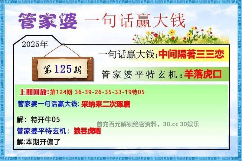 124期:单双中特♀【单数】♀开:牛05中